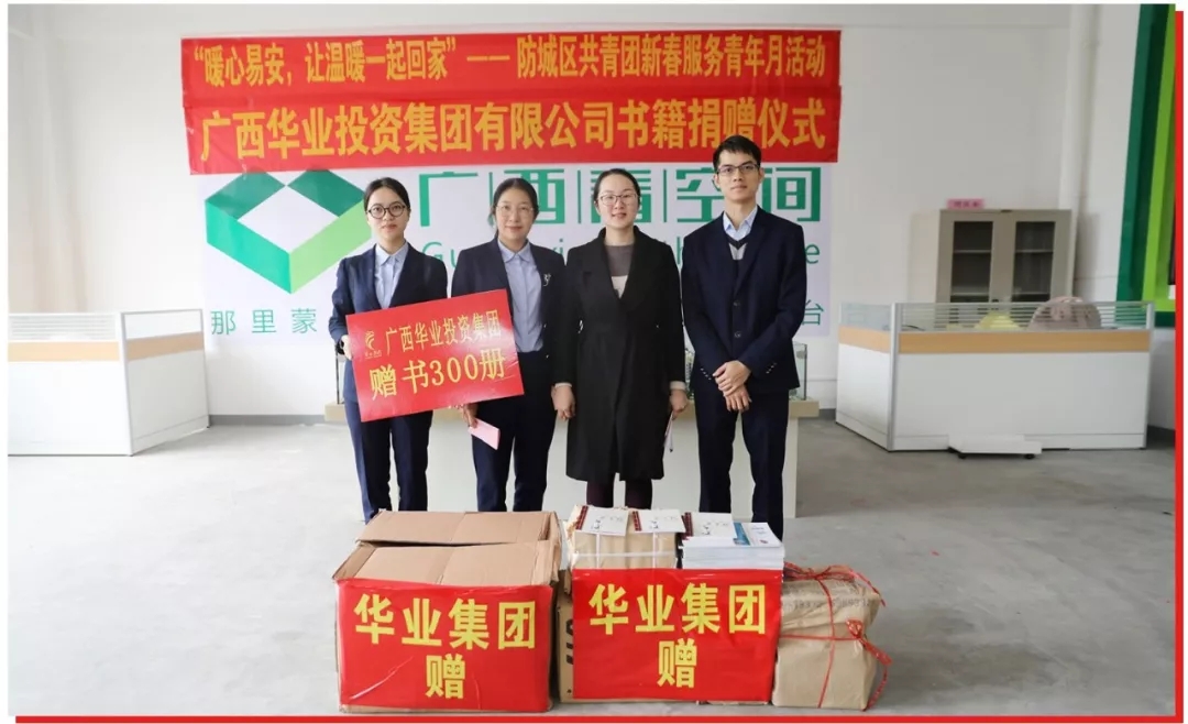 2020年1月15日,華業(yè)集團到防城區(qū)水營街道那里蒙易地扶貧搬遷安置點開展“暖心易安,讓溫暖一起回家”主題便民利民惠民服務活動。活動由共青團防城區(qū)委員會、廣西華業(yè)投資集團有限公司主辦,防城區(qū)水營街道、防城港市愛心志愿者協(xié)會協(xié)辦。華業(yè)集團工會主席鐘麗霞帶隊參加了活動,并代表華業(yè)集團向那里蒙安置點青少年服務平臺捐贈有益書刊300余冊。