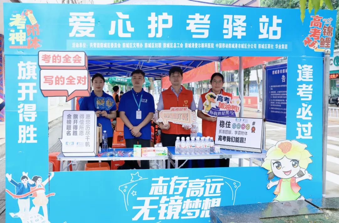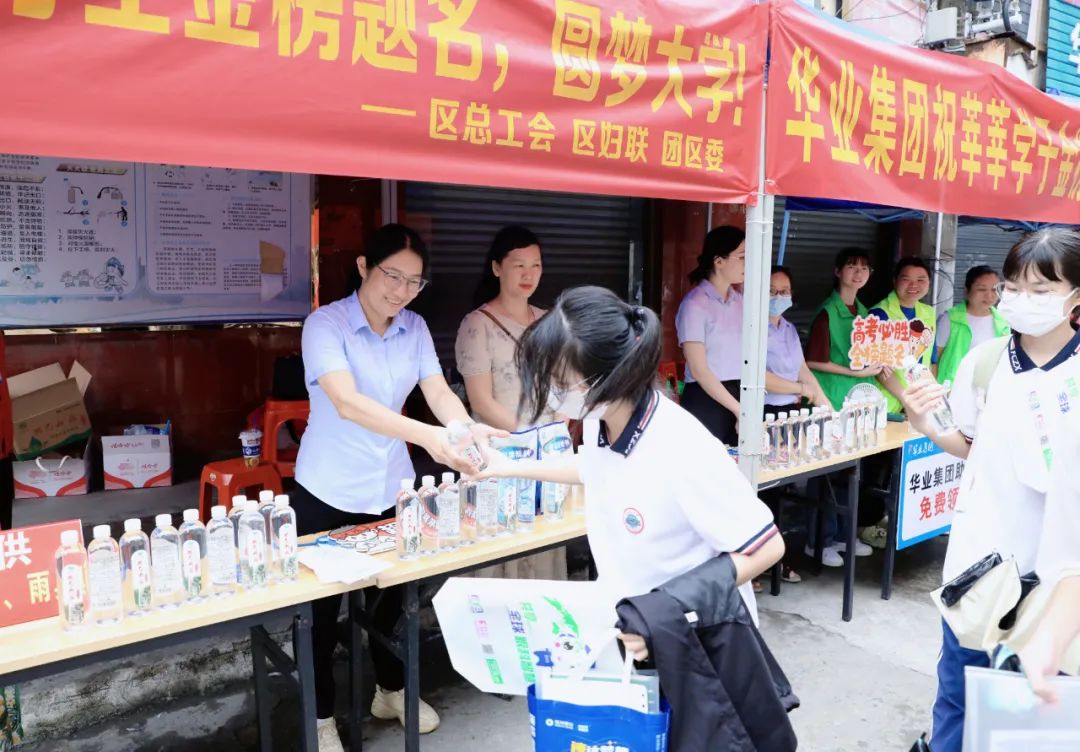 6月7日上午,華業(yè)集團(tuán)工會(huì)主席鐘麗霞率公司員工前往防城區(qū)各個(gè)考點(diǎn)布置愛(ài)心護(hù)考驛站,為考生及家長(zhǎng)免費(fèi)提供飲用水、紙巾、文具包、應(yīng)急藥品等為高考加油助力。