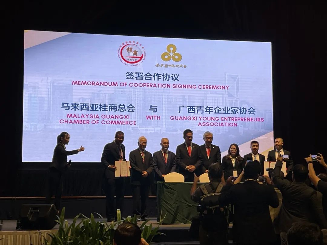 交流會上,廣西青年企業(yè)家協(xié)會常務(wù)副會長莫呂斌與大馬桂商總會署理總會長陳拔釗共同簽署合作備忘錄。龍其生會長和拿督呂海庭等人共同見證。
