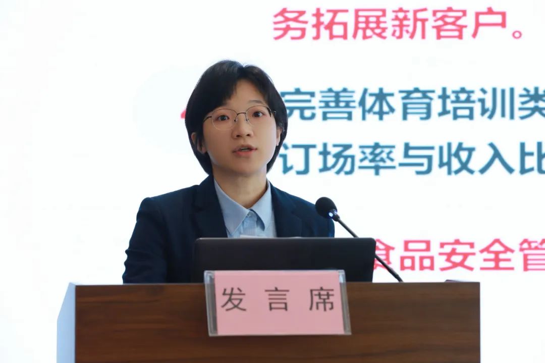 金花茶酒店總經(jīng)理、培訓(xùn)學(xué)校常務(wù)副校長(zhǎng)李璟作工作匯報(bào)