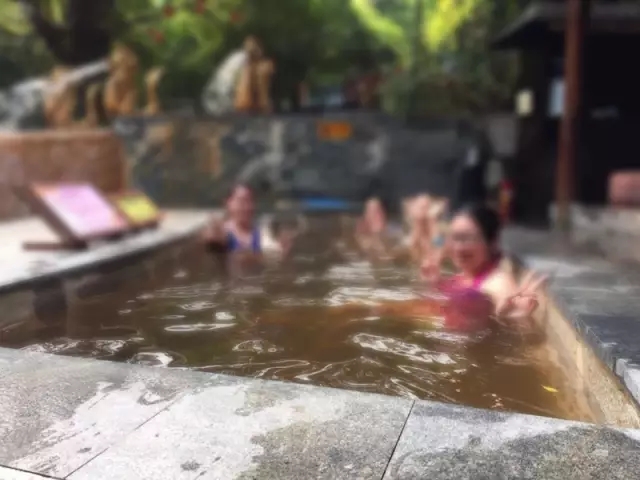 溫泉水中,笑靨如花。
