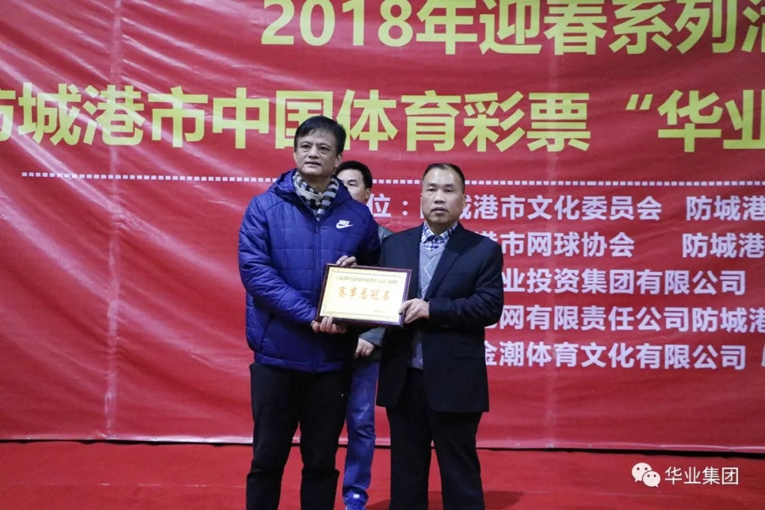 2018年2月2日,由華業(yè)集團(tuán)冠名的“防城港市中國體育彩票華業(yè)杯網(wǎng)球精英賽”在華業(yè)城全民健身活動中心拉開序幕,防城港市市委常委、常務(wù)副市長唐軼昂,副市長、公安局局長王琛,市住建委主任張常路,市文化委員會副主任陳文智,廣西華業(yè)投資集團(tuán)總裁龍其偉,市網(wǎng)球協(xié)會會長莫自鋒出席開幕式。