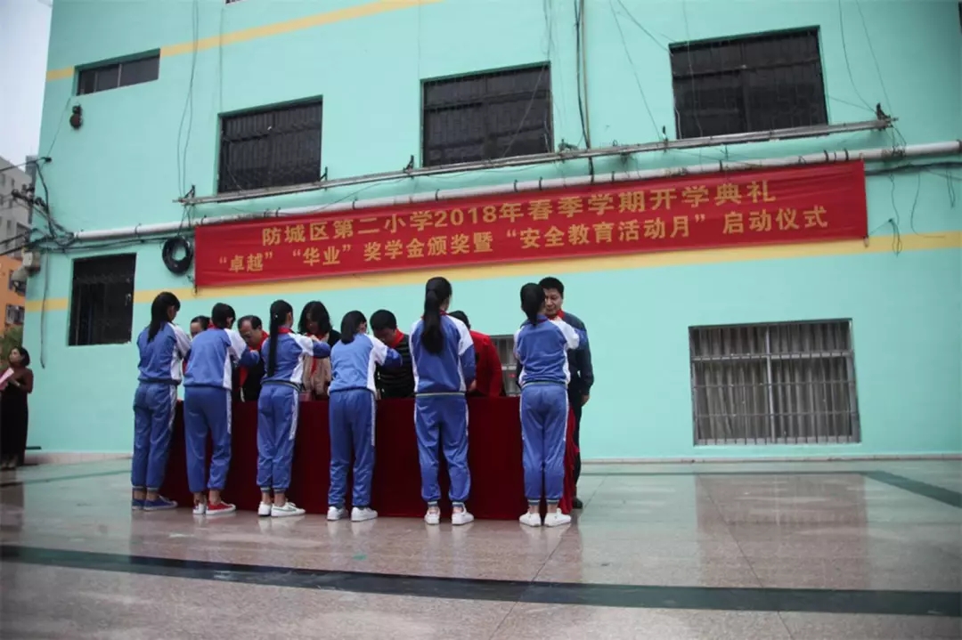 3月14日上午,廣西華業(yè)集團(tuán)董事長龍其生受邀參加防城港市防城區(qū)防城鎮(zhèn)第二小學(xué)的春季開學(xué)典禮、獎(jiǎng)學(xué)金頒獎(jiǎng)暨安全活動(dòng)月啟動(dòng)儀式。