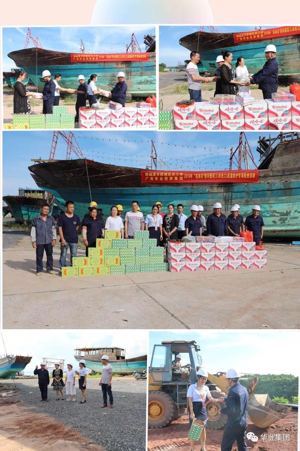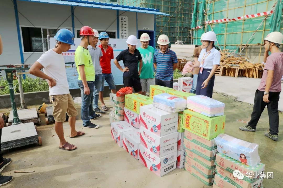 華業(yè)集團(tuán)夏日送清涼活動產(chǎn)生了良好的社會影響,防城區(qū)總工會聞悉消息后,當(dāng)即決定雙方聯(lián)合組織開展更多的深入工地送清涼活動,讓更多的在烈日下辛勤工作的工人朋友們得到關(guān)心、愛護(hù)和鼓舞。2018年8月7日下午,防城區(qū)總工會符皓副主席帶領(lǐng)工會干部與華業(yè)集團(tuán)工會鐘麗霞主席一行頂著烈日的熏烤,驅(qū)車前往白龍海邊防碼頭為漁光小鎮(zhèn)項(xiàng)目施工作業(yè)工人送清涼用品,并親切地慰問了工人朋友們,給予深切的關(guān)懷和鼓舞。