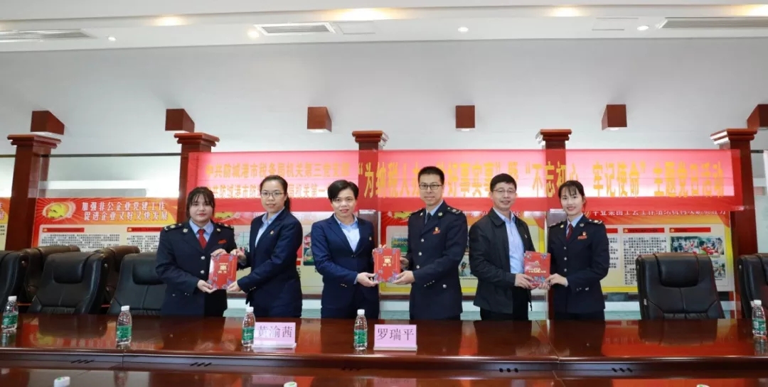 為真正把主題教育黨支部“五個一”的活動要求落到實處,2019年11月28日上午,防城港市稅務(wù)局第三黨支部、防城港市防城區(qū)稅務(wù)局第一黨支部到華業(yè)城與華業(yè)集團(tuán)黨支部開展“為納稅人辦一件好事”暨“不忘初心,牢記使命”支部聯(lián)建主題活動。集團(tuán)黨支部副書記王孟軍、財務(wù)總監(jiān)李情帶領(lǐng)支部黨員及相關(guān)財務(wù)人員參加了本次活動。